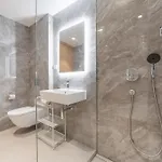 At Sea View Family Apartments In Unique Kalaranna District, a walk-in shower and a separate toilet are provided to improve your comfort. Moreover, there are hairdryers, towels, and bathrobes as well.